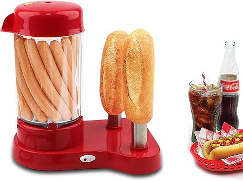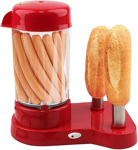 Huachaoxiang Hot Dog Maker pour Saucisses - Style Rétro Machine À Hot-Dog avec des Récipients Thermiques Amovibles - Chaud Saucisse avec des Brochettes en Acier Inoxydable pour Chauffe-Pain,Rouge