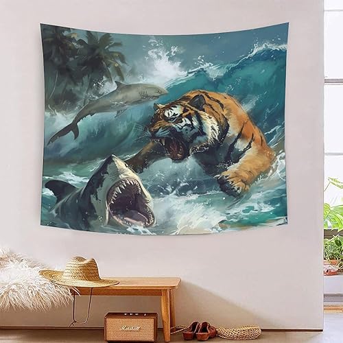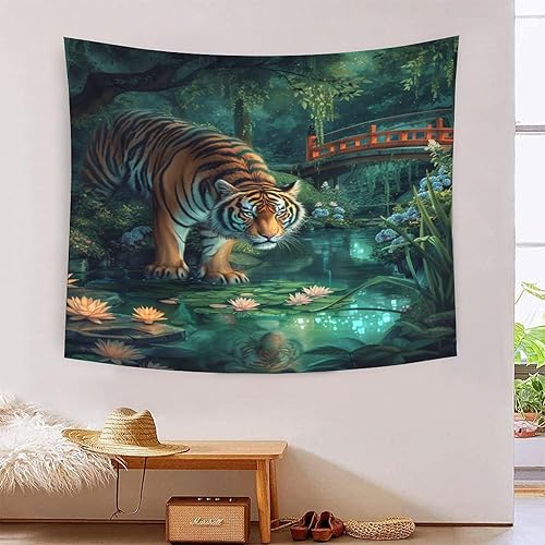 HLXZMCVBT Le tigre 3D Effet Tapisserie Art Mural Tapisserie Murales Tapisserie Murale Tissu Pour Chambre Salon Serviette De Plage Tapisserie 130cmx150cm