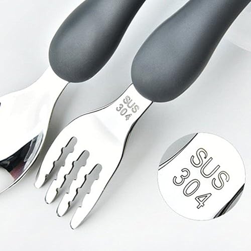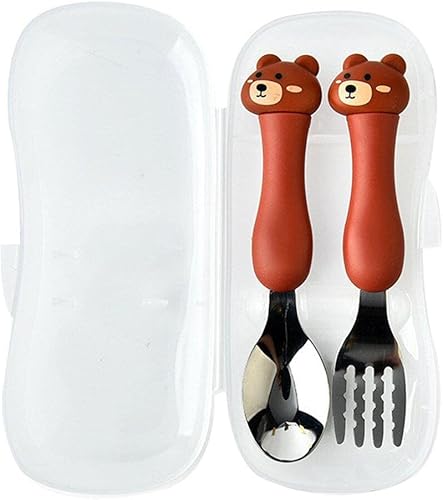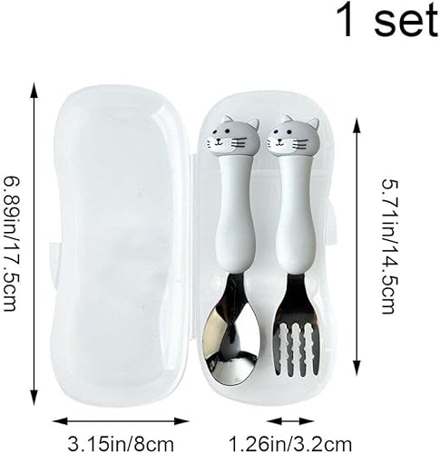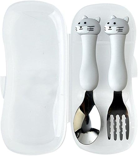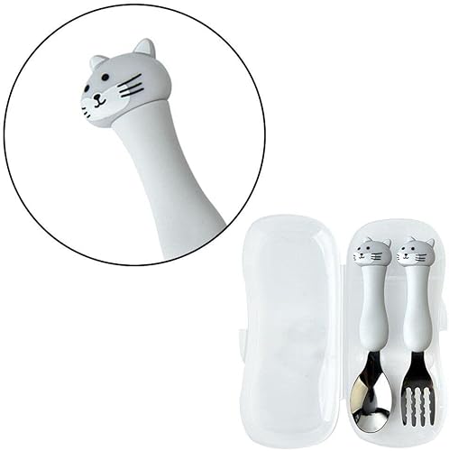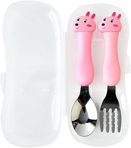 Hrippy Enfant en Bas âge Fourchette cuillère Ensemble en Acier Inoxydable Lapin Motif Enfants Couverts PP ustensiles avec étui pour Enfants dîner gâteau