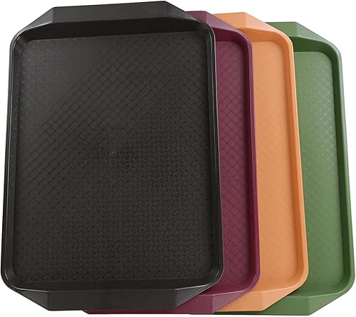 Qskely Lot de 4 Plateaux en Plastique pour Restauration Rapide, Plateau de Service Plastique