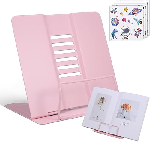 Kssvzz Support de Lecture, Porte Livre en Métal, Portable Support Livre avec 6 Hauteurs Réglables, Livre Stand Multifonction pour Livre de Recette Cuisine, Tablette, Rose