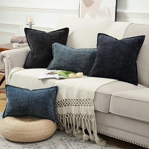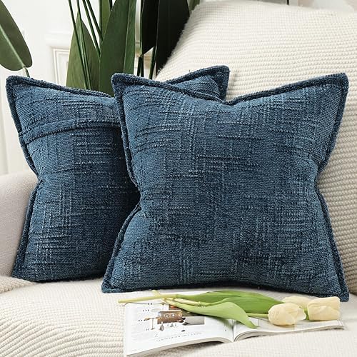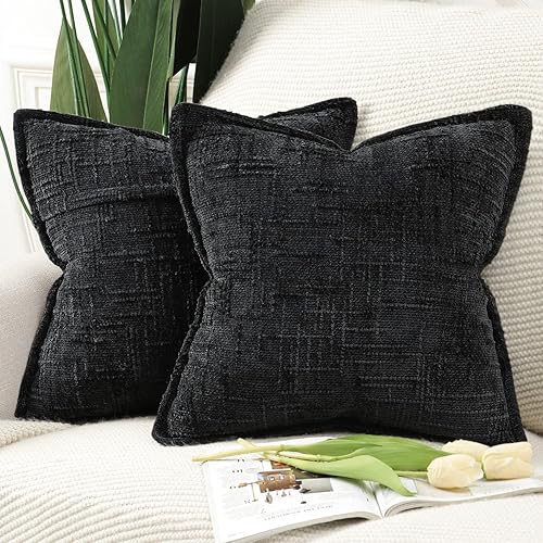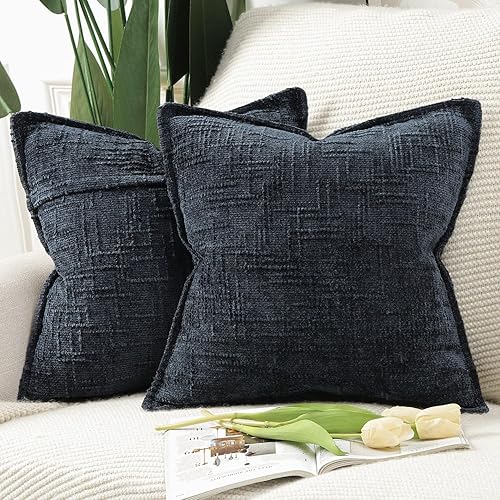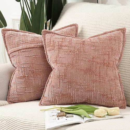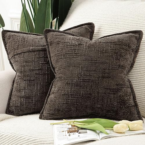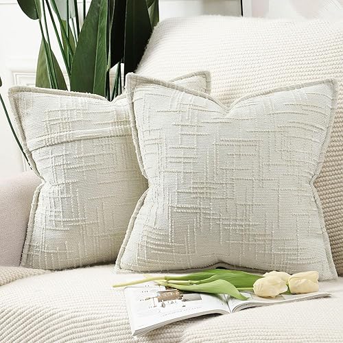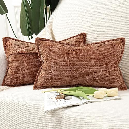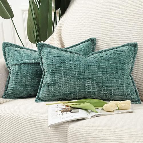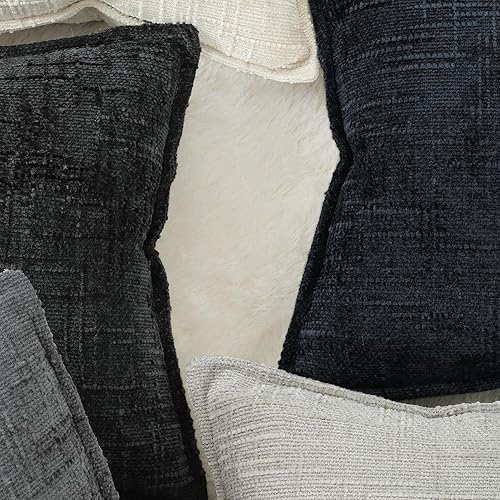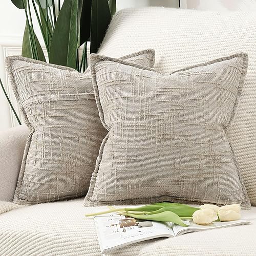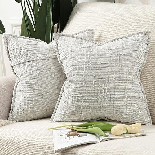 Madizz Lot de 2 Housses de Coussin d'Appoint en Chenille avec Bordure Décoratives Douces pour Canapé, Chambre & Salon Décoration Maison Moderne Gris Clair 30x50 cm