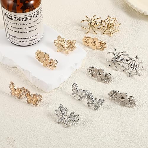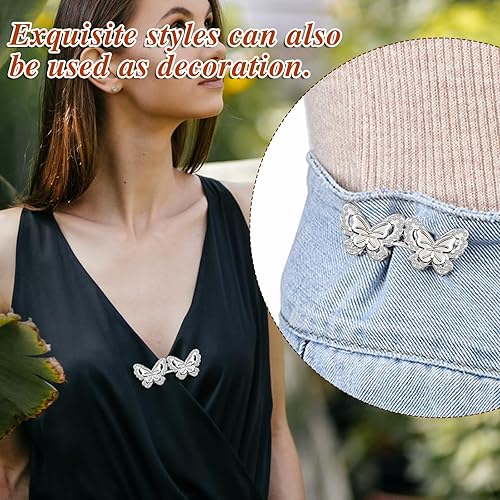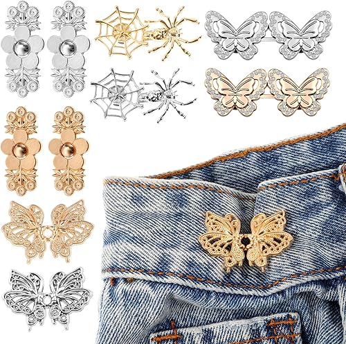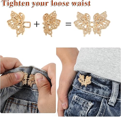 Qianyu Lot de 10 boucles de taille réglables pour pantalons sans clous - Clip en métal - Papillons - Boutons sans couture - Boutons amovibles - Clips pour pantalons et jeans