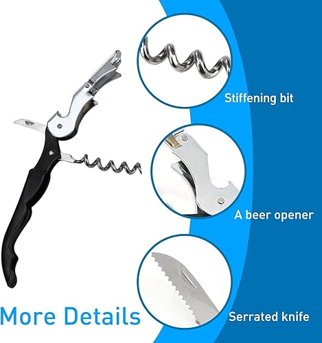 Zuroki Tire Bouchon Sommelier Professionnel, Cateau Sommelier en Ancier Inoxydable, Cateau de Serveur, Coupe-Capsule Dentelé, Tout-en-Un, Multifonctionnel, Ouvre Bouteille de Vin et de Bière