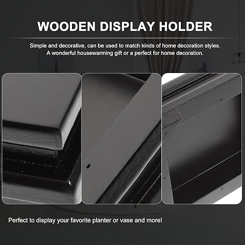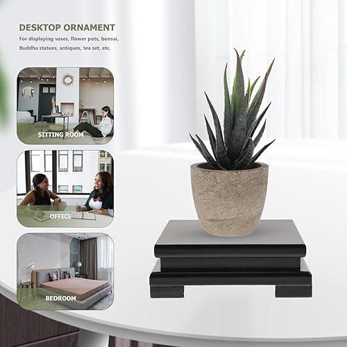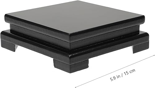 TOPBATHY Support carré en bois pour ornements, base de présentation en bois pour ensembles de thé, statues de Bouddha, petits aquariums, vases et décorations – 15 x 15 x 5 cm, noir