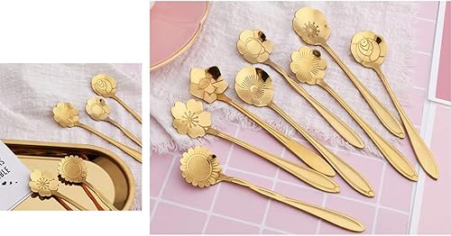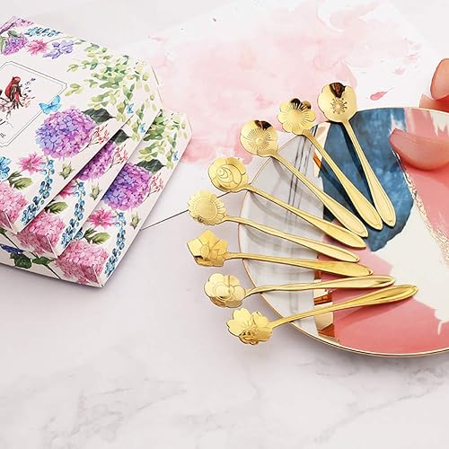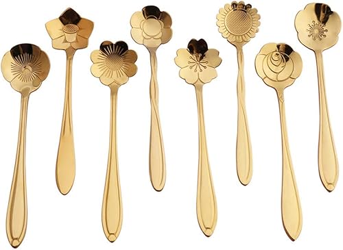 Ototon Cuillères à Café Forme de Fleurs en Acier Inoxydable Cuillères à Dessert Cuillère à Sucre Crème pour Cuisine Pâtisserie Mariage Couverts 8pcs