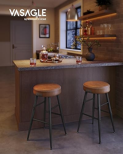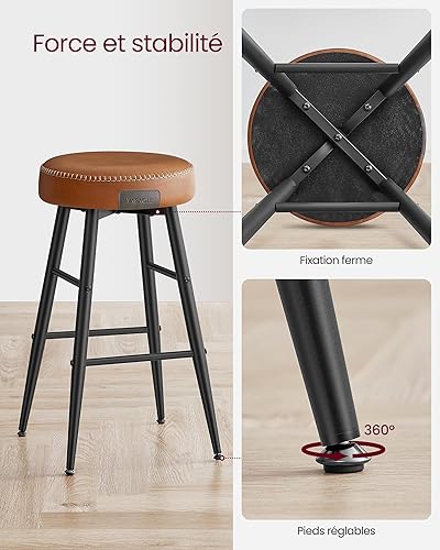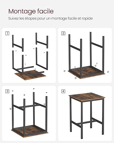 VASAGLE Ensemble Table Haute avec 2 Tabourets de Bar, Table de Bar Carrée, Table de Cuisine, Chaises de Bar, Chaise de Cuisine, avec Revêtement en PU, Marron Rustique, Marron Caramel et Noir LBT034K01