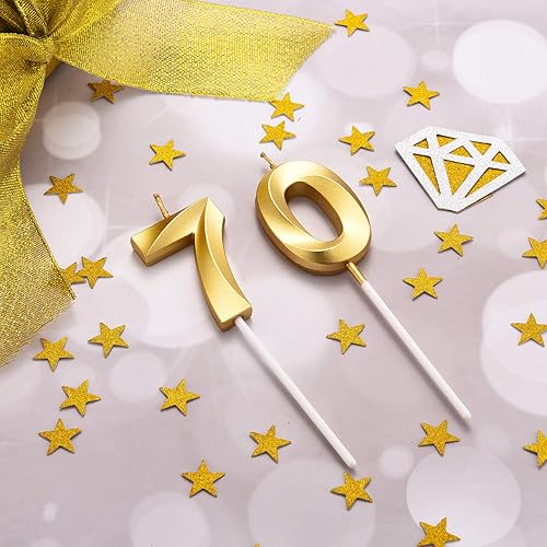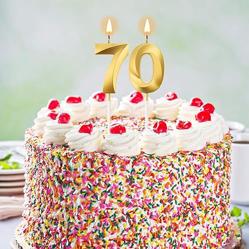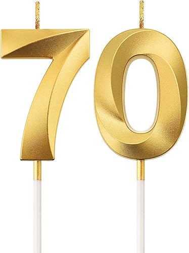 BBTO Bougies de 70e Anniversaire Bougies de Gâteau de Numéro Décoration de Gâteau Topper Joyeux Anniversaire pour Fournitures de Fête d'anniversaire Mariage Célébration