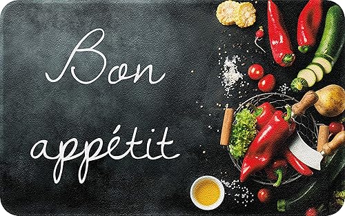 ID MAT Decor de Cuisine 'Bon Appetit Decor de Cuisine, Fibres Synthétiques, Noir, 50x80x0, 4 cm