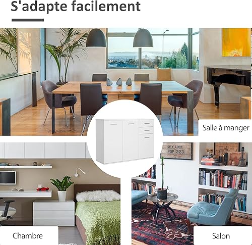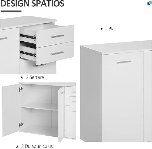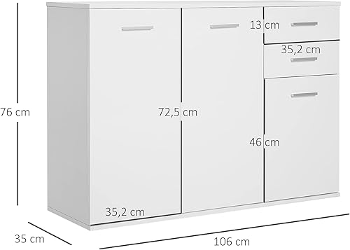 HOMCOM Buffet Meuble de Rangement 2 tiroirs coulissants 2 placards étagère réglable Panneaux Particules Blanc
