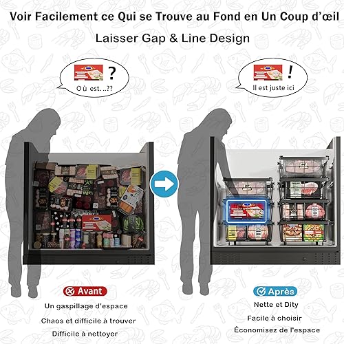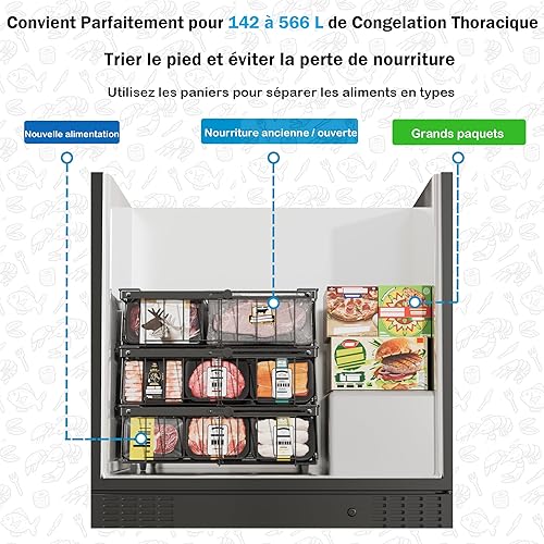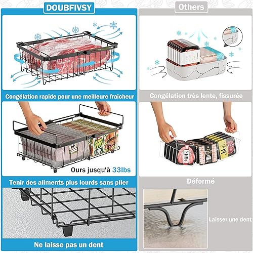 DOUBFIVSY 2PCS Panier Congelateur Coffre, Rangement Congelateur Extensible Empilable Pliables avec Poignées, Métal Organisateur de Congélateur Polyvalent Pour 140-570L Congélateur 45,5 x 30,5 x 15 Cm