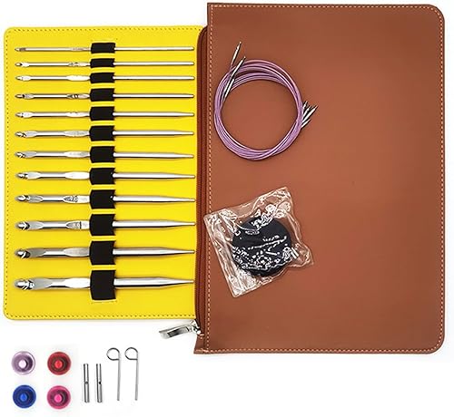 YPREWY Lot de 12 crochets tunisiens afghans à tricoter en acier inoxydable 12 tailles 3 mm à 10 mm