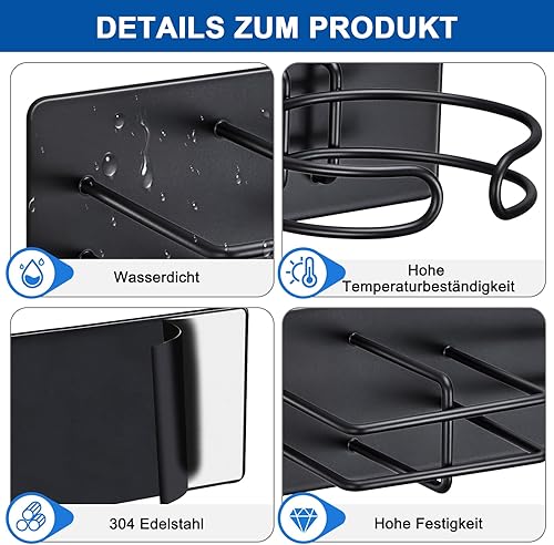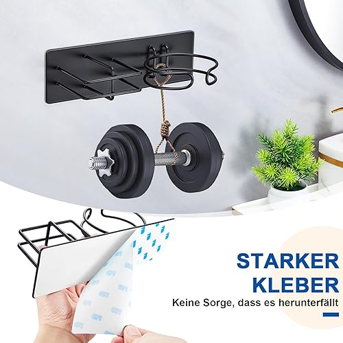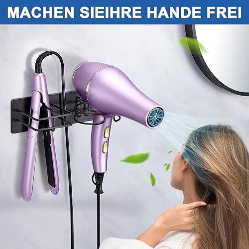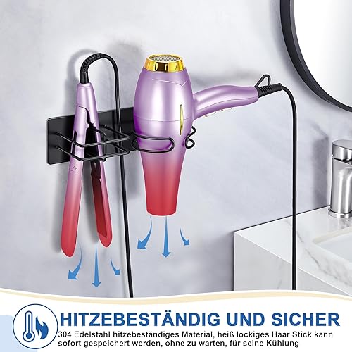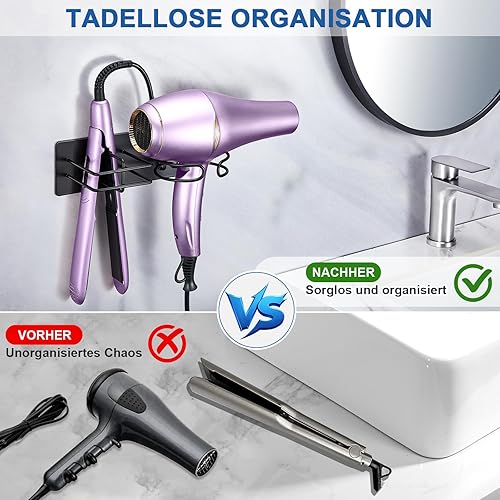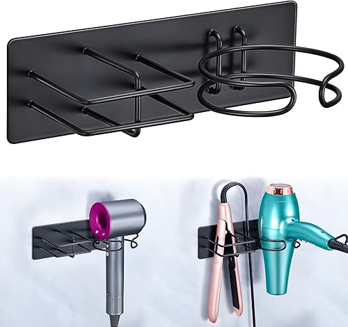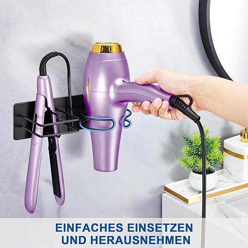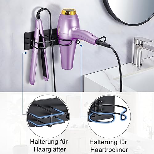 XILIMEN Support Seche Cheveux, Porte Seche Cheveux et Lisseur, Acier Inoxydable Porte Seche Cheveux Mural, Auto-adhésif Support Seche Cheveux sans Percage, Convient pour Salle De Bain, Noir
