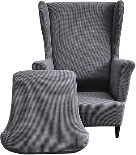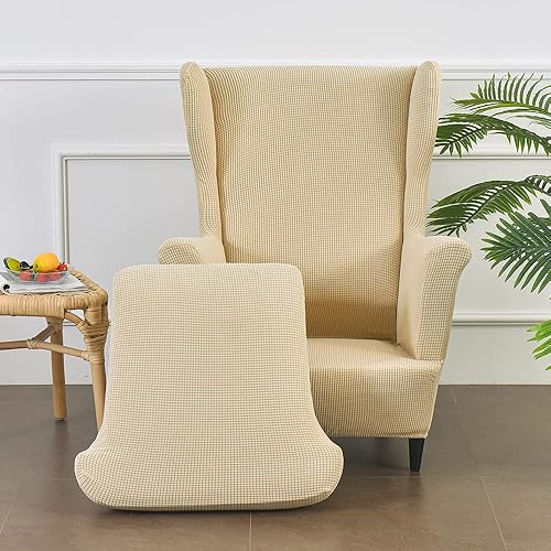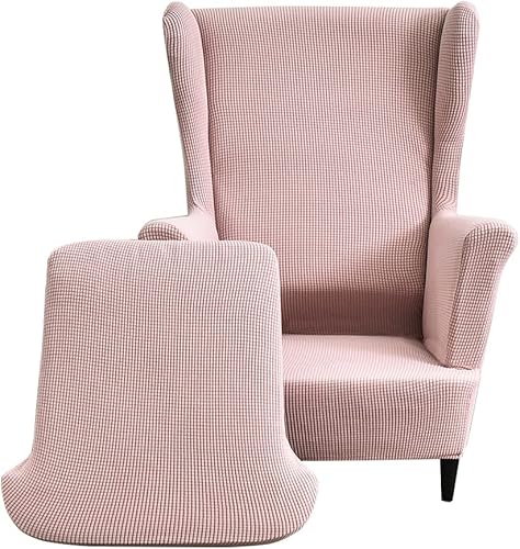 CHNSHOME Housse de Fauteuil à Oreilles 2 pièces Extensible Housse de Fauteuil à Oreilles 1 Place avec accoudoirs élastique Housse de Chaise à Oreilles Rose