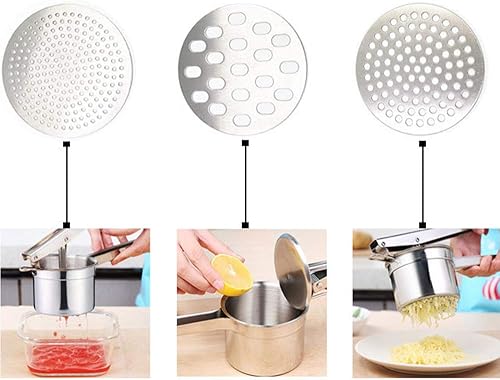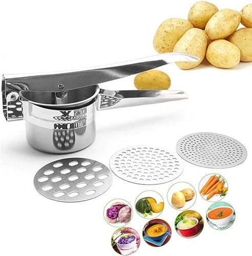 nuluxi Presse-Purée à Pommes de Terre Professionnel 3 en 1 en Acier Inoxydable Presse-purée de Pommes Pomme de Terre Masher Presse à la Main Idéal pour Fruits Légumes Agrumes Aliments pour Bébés