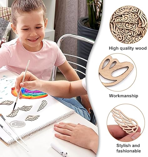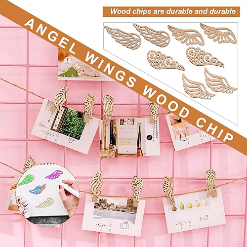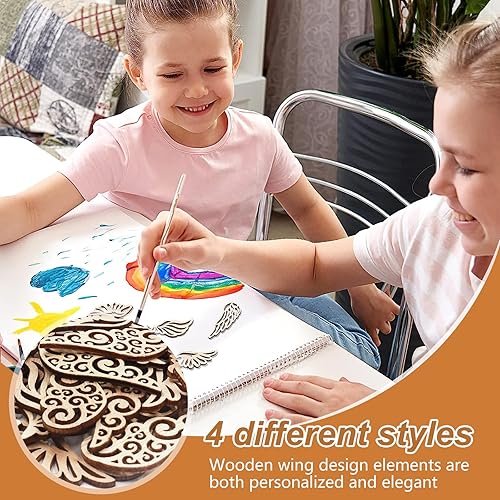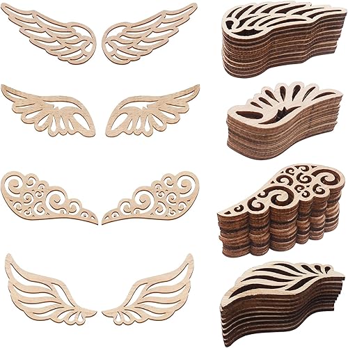 JNWYH Lot de 120 ailes d'ange en bois - 6,2 x 2,5 cm - Pour décoration de maison, fête, artisanat, pendentifs décoratifs, bricolage (4 styles)