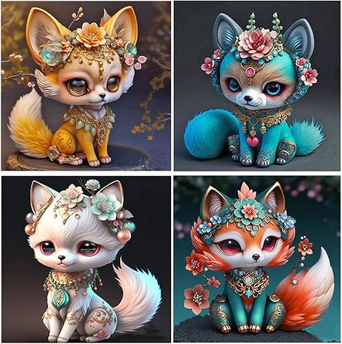 DCIDBEI Diamond Painting Chat Lot de 4 30x40 cm Broderie Diamant Chat AI Diamond Painting Chat Enfant Peinture Numero Adulte Chat Tableau Diamant Kit Complet Adulte Chat Diamond Painting Enfant Fille