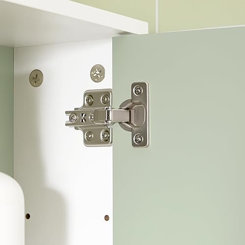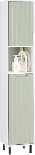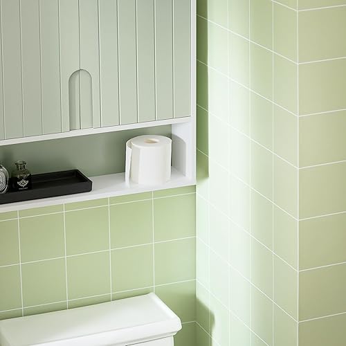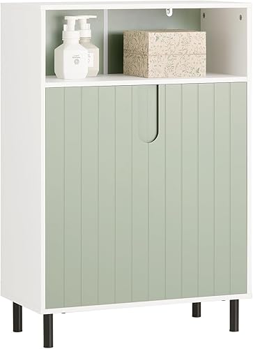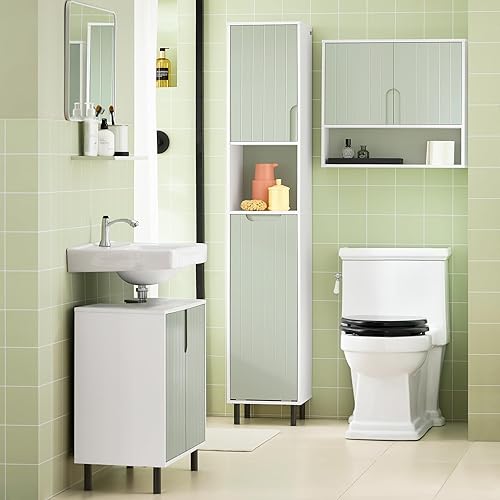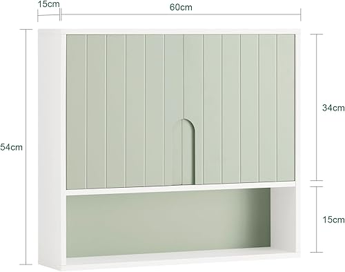SoBuy Armoire Murale, Placard de Rangement, Meuble de Rangement Suspendu Salle de Bain, Meuble Haut avec 2 Portes, Étagère Réglable et Étagère Ouverte, 60x15x54 cm, Blanc et Vert, BZR140-GR