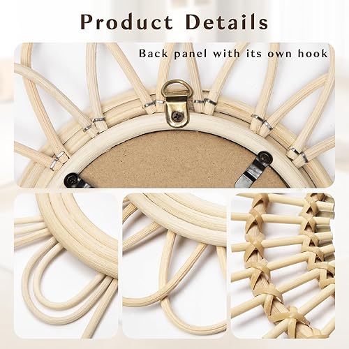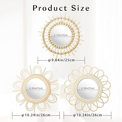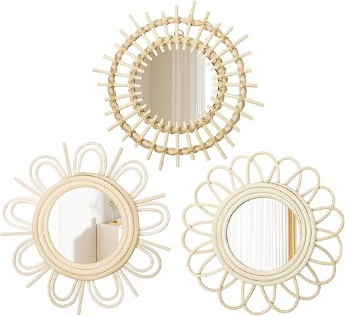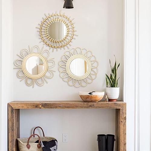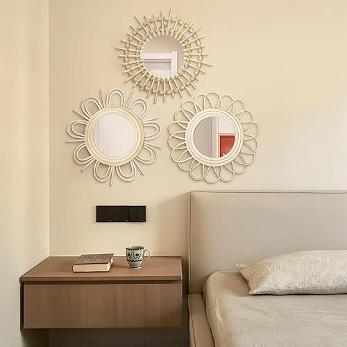 Oairse Lot de 3 miroirs muraux Soleil - Décoration bohème moderne - Avec crochets en métal - Décoration murale - Style bohème - Décoration murale - Pour salle de bain, entrée, salon, chambre à coucher