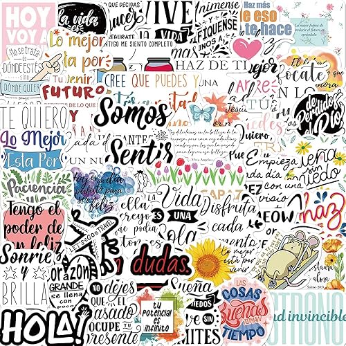 Autocollants texte inspirant en espagnol 50pcs Mignon Scrapbooking Autocollants Esthétique Rétro Journaling Fournitures Kit Imperméable pour Planner Scrapbook Papier Ordinateur Portable
