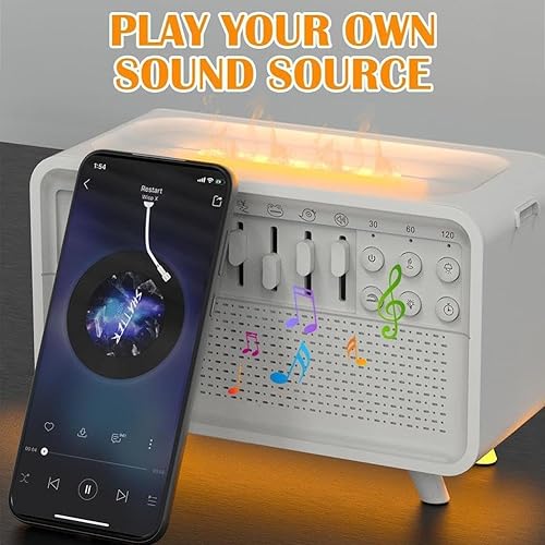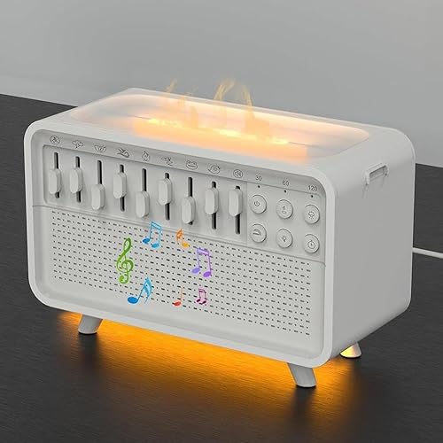 Humidificateur de bruit blanc multifonctionnel avec haut-parleur Bluetooth et diffuseur de veilleuse, Fl 3 en 1 Aromathérapie - LED sans flamme