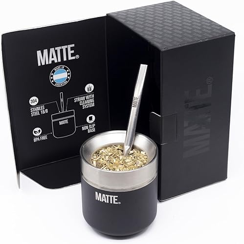 Matte Ensemble gourde et bombilla Yerba Mate 184,3 g – Comprend une boîte DS Pro – Kit Yerba Mate sans BPA avec paille matée, design élégant, base antidérapante (noir)