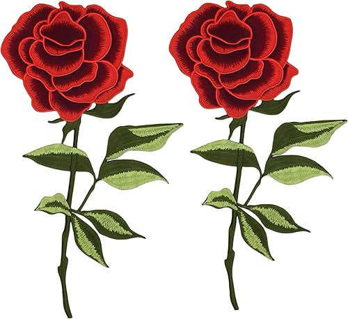 Pandalein Lot de 2 écussons brodés à repasser - Motif rose rouge - Pour vêtements, bricolage, jeans, t-shirts, vestes - Pour travaux manuels - Rouge