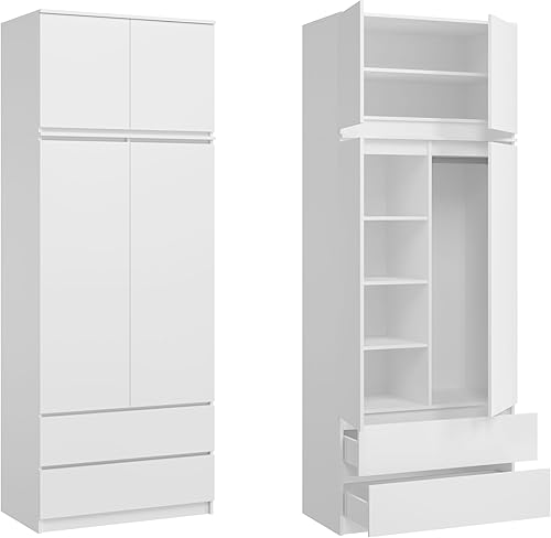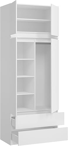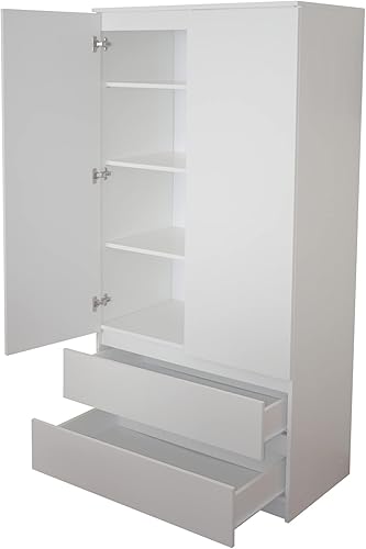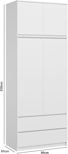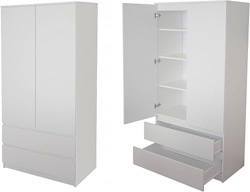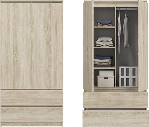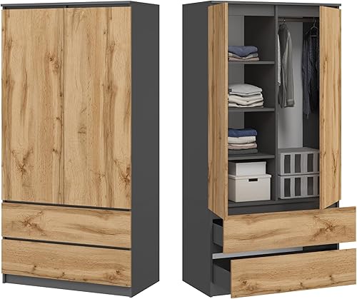 Armoire en bois anthracite et chêne - 180 cm de haut et 90 cm de large - Avec 2 tiroirs, 3 étagères et tringle à vêtements - Pour chambre à coucher, couloir, cave, bureau