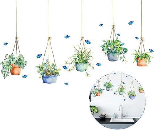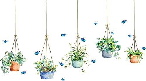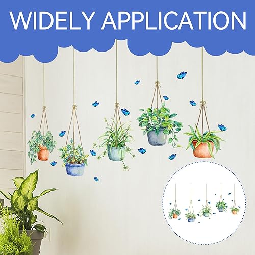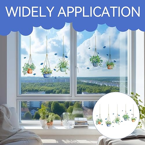 Stickers Fenetre Plante en Pot, Feuilles Stickers Fenêtre Électrostatique Sticker Muraux de Fleurs Anti-Collision Décoration Réutilisables Autocollants Vitrine Amovible pour Fenêtre Porte Cuisine