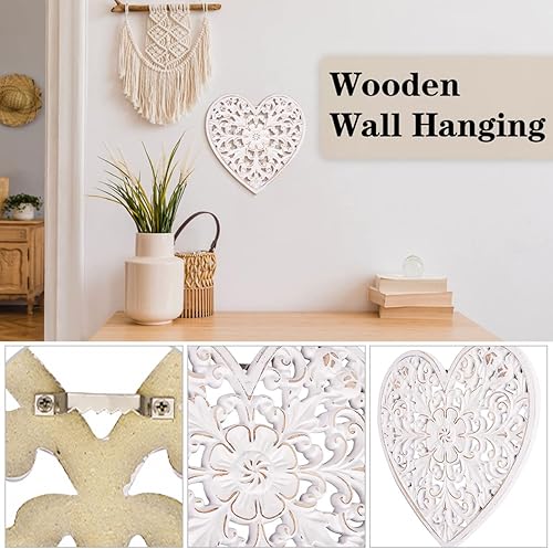 Jetcloud Décoration murale en bois creux sculpté de 30 cm, décoration murale rustique à suspendre pour maison, couloir, chambre à coucher, salon, café, bureau (forme de cœur)