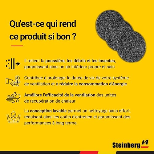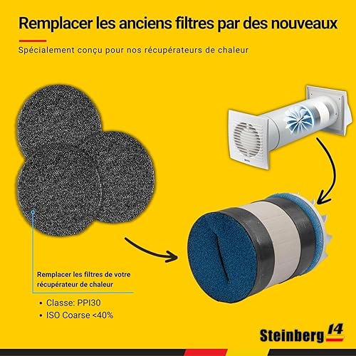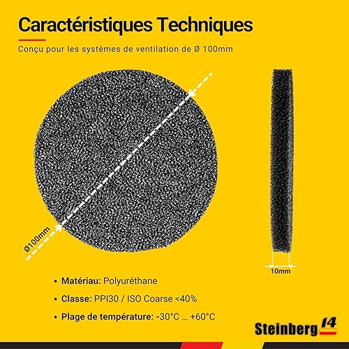 Steinberg14 Filtres Ronds en Polyuréthane pour Système de Ventilation - 3 Unités Filtres à Air - 100mm Filtre à Poussière - Filtre Lavable pour Unité de Récupération de Chaleur