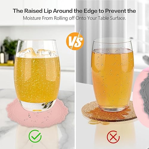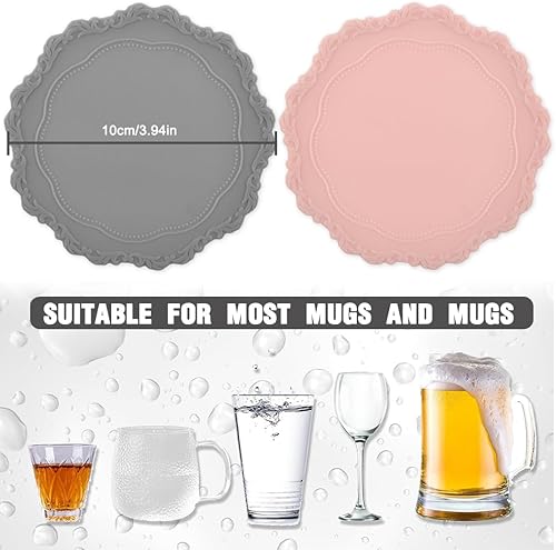Dessous de Verre en Silicone pour Boissons,Lot de 6, sous Verre Tasses Rondes Noires Antidérapants, Bar, Tasses, Verres, Décoration de Table,Coasters