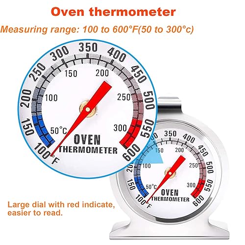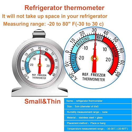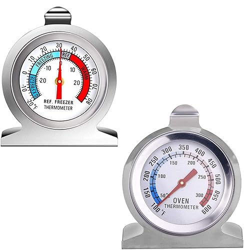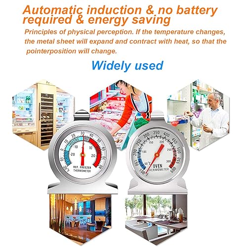 2 Pcs Thermomètre Grand Cadran en Acier Inoxydable, 1 Pcs Thermomètre de Four & 1 Pcs Thermomètre de Réfrigérateur, Thermomètre de Cuisson au Four pour Cuisine, Thermomètre de Congélateur