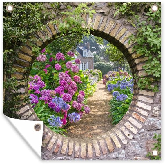 MuchoWow Poster Exterieur Transparent - Fleurs - Hortensia - Été Decoration Murale 100x100 cm Résistant aux intempéries/Soleil