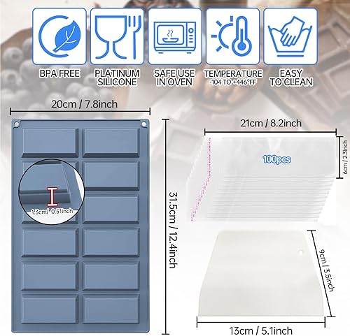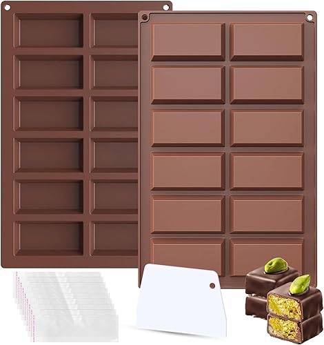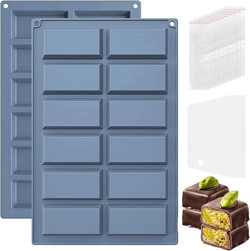BMSQOFD Moule a Tablette de Chocolats Dubai Silicone,2 Pièces Moule Barre Pepites De Chocolat Forme Carrée Grand Démoulage Facile Pour Protéiné Dragées Céréales