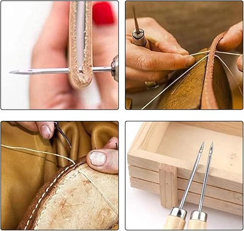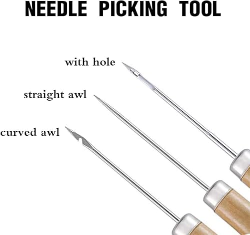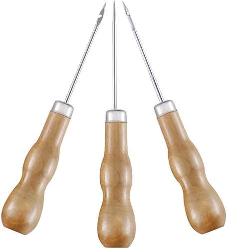 WKRTDY Poinçon en Cuir à Manche Rond pour Machine à Coudre - Ensemble de 3, avec Manches en Bois, Outil de Couture idéal pour Le Bricolage et l'artisanat en Cuir