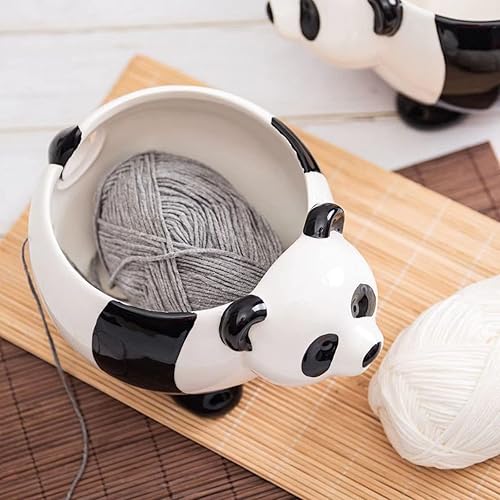 TIAVNTD Bol à laine en céramique Panda pour tricot et crochet, pour protéger la laine et éviter les nœuds, 19,8 x 10,7 cm, Noir, Taille M