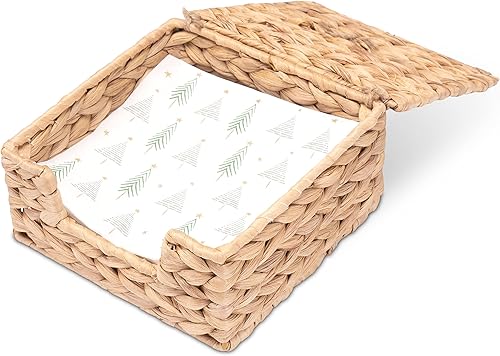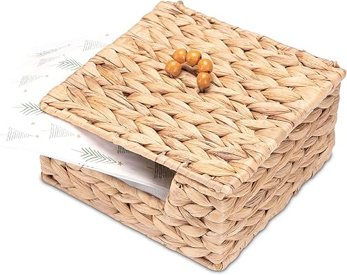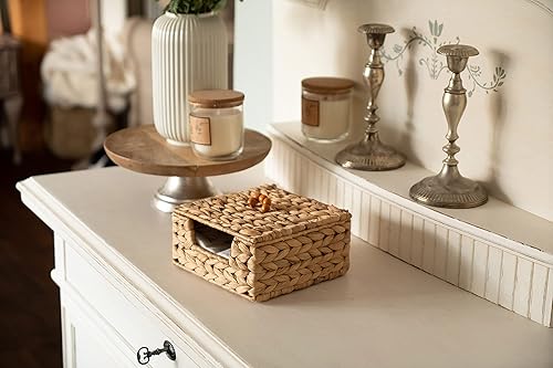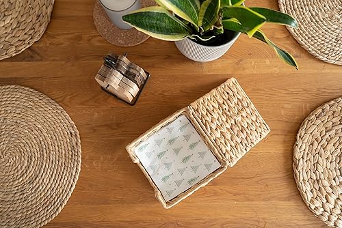 Decorasian Porte-Serviettes tressé en Jacinthe d'eau - Rangement pour Serviettes de Table avec Couvercle pour Toutes Les Serviettes en Papier habituelles - Porte-Serviettes Style Vintage Boho