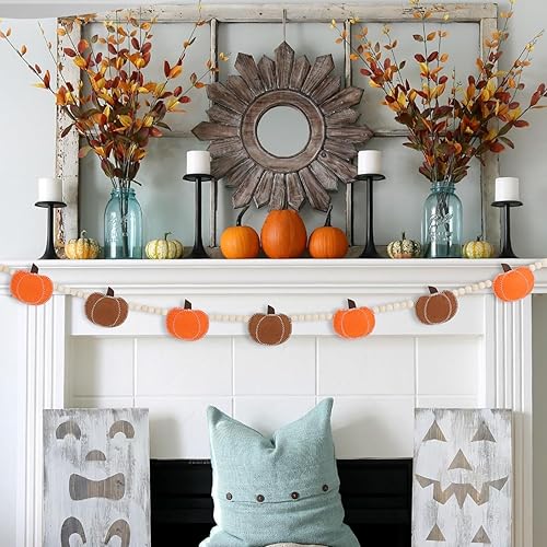 COMBLU Guirlande de citrouilles en feutre, décoration de citrouille d'Halloween, décorations d'automne pour la maison, guirlande de citrouille en feutre et perles en bois et couronnes d'automne de