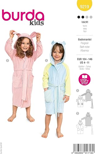 Burda kids Patron de couture #9219 Peignoir pour enfant avec oreilles d'animaux Niveau de couture 2 (léger) Taille 104-146