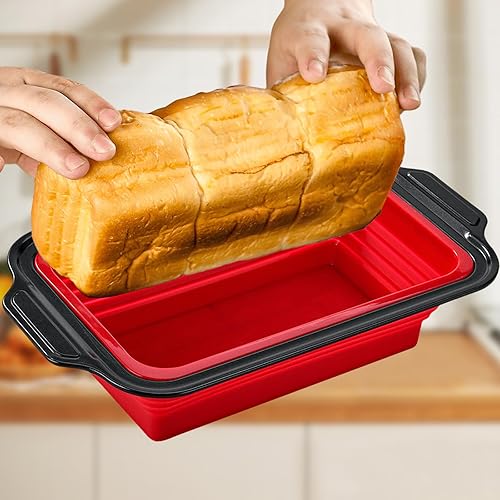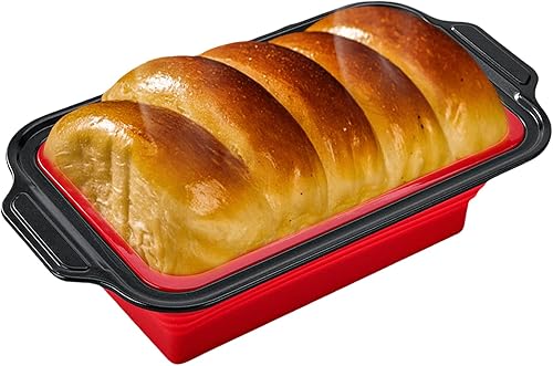 GOMETY Moule à cake en silicone, 31 cm, avec cadre renforcé en métal, antiadhésif, rectangulaire, sans BPA, idéal pour la cuisson du pain et de la pâtisserie