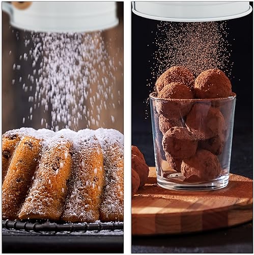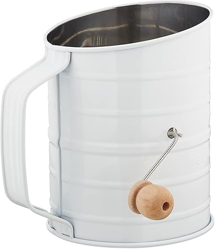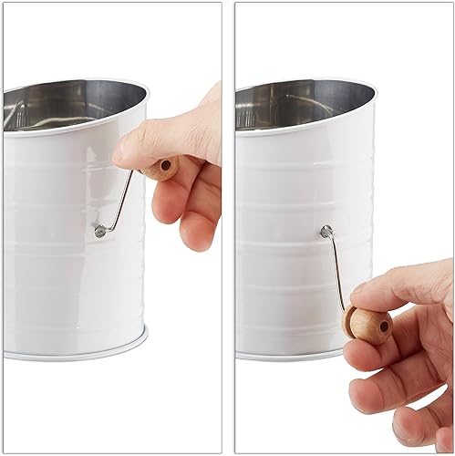 Relaxdays Passoire à farine retro, mailles fines, acier inoxydable, manivelle, d. 11 cm, sucre en poudre,cacao, blanc.