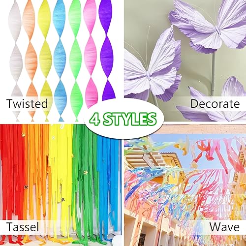 MOSTFUN 12 Rouleaux Papier Crepon 4.5 cm x 25 m, 12 Couleurs Papier Crepon Multicolores pour Décoration de Mariage Fête Anniversaire Noël