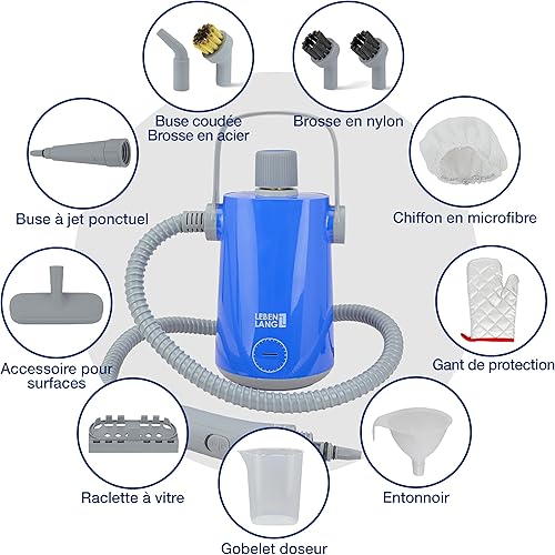 LEBENLANG Nettoyeur Vapeur à Main 1000 W - Réservoir 300 ml & 10 Accessoires Inclus I Machine à Vapeur Nettoyage Nettoyant Vapeur Pour Canapé Vitre Nettoyeurs Vapeur Électriques nettoyeur vapeur vitre