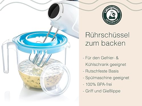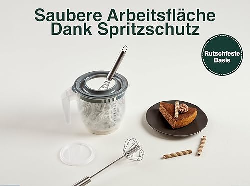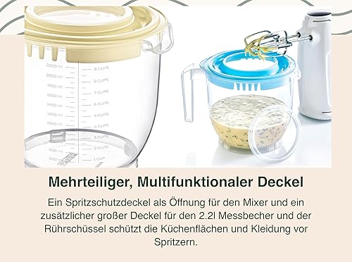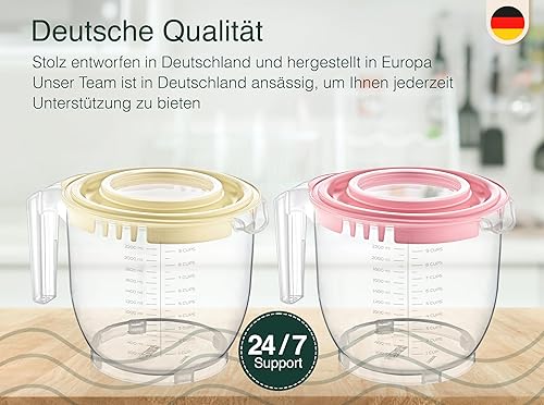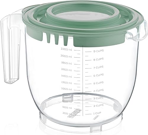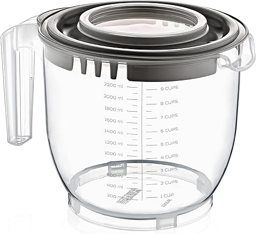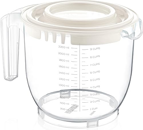 uandu Gobelet doseur et mélangeur avec couvercle - Grand 2,2 l - Échelle de mesure - En plastique de qualité supérieure - Ustensiles de cuisine pratiques - Bol mélangeur - Couvercle anti-éclaboussures