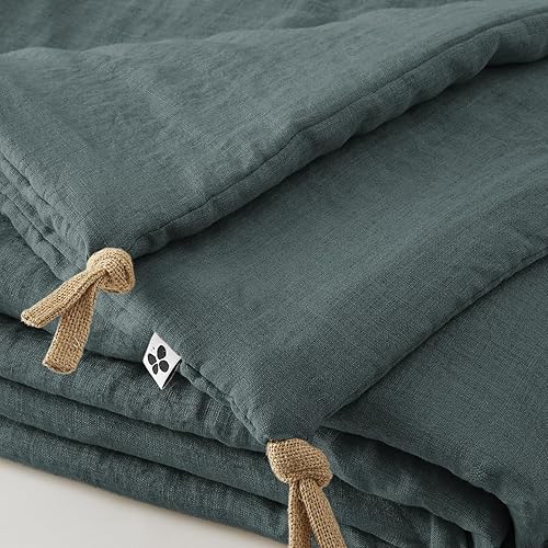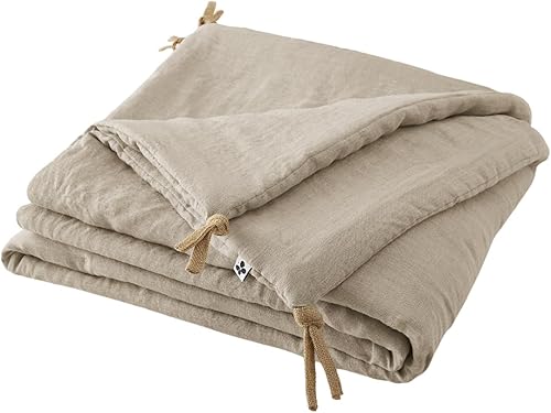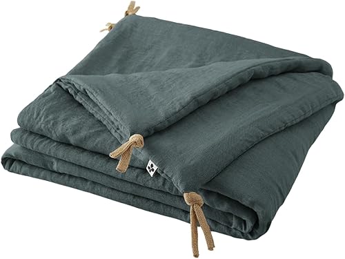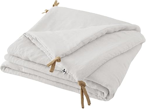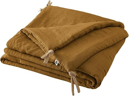 Meubletmoi Édredon 90 x 200 cm en Lin Lavé Caramel avec Capitonnage Léger et 4 Nouettes en Jute - Linge de Lit - Luisa