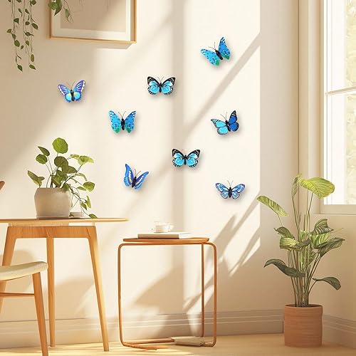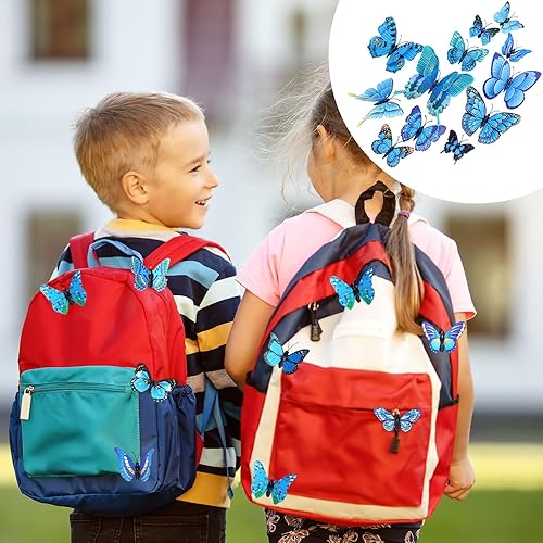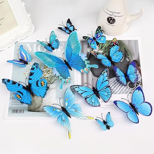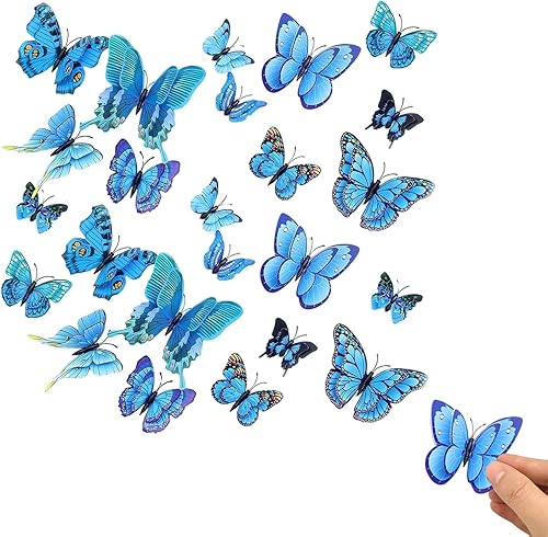 Lot de 24 papillons décoratifs avec clip en PVC pour fenêtres, portes, fêtes de printemps et d'anniversaire, bricolage et bricolage, bleu (6-12 cm)