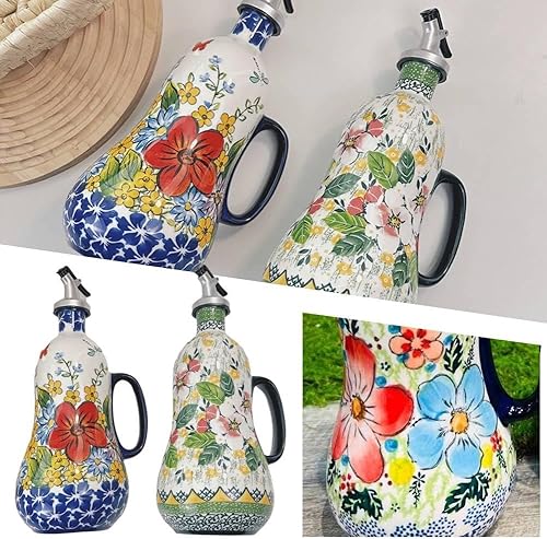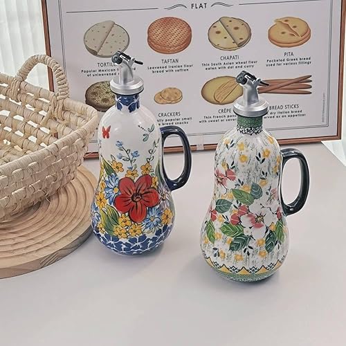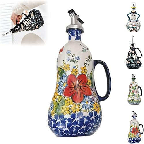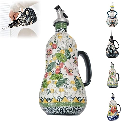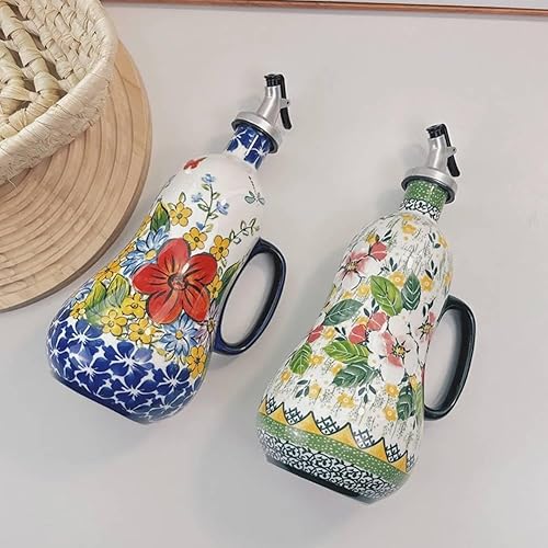 Flacon distributeur d'huile d'olive en céramique avec bec verseur anti-goutte, flacon distributeur de vinaigre en céramique, bec en acier, distributeur d'huile en céramique pour cuisine, convient pour