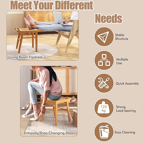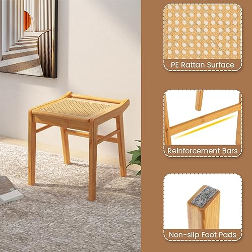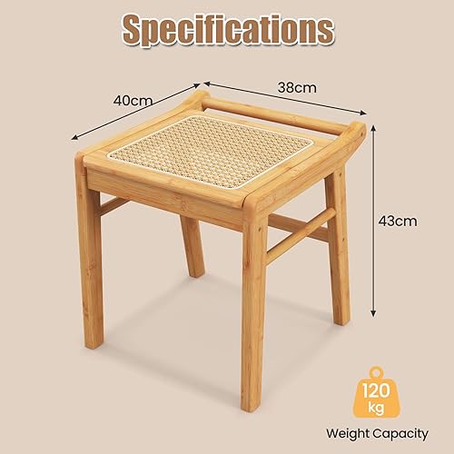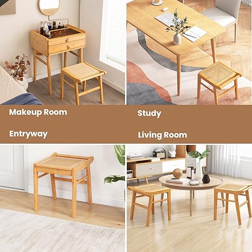 HOMASIS Tabouret de toilette de maquillage en bambou, banquette assise en bambou et rotin capacité de charge jusqu'à 120 kg, petite chaise cosmétique coiffeuse, salon, chambre à TF11088XKES