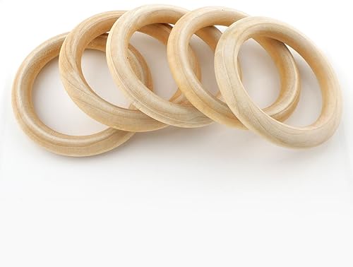 Perlin H166 Lot de 5 anneaux en bois lisse non terminés Ø 55 mm Pour rideaux, anneaux de rideaux